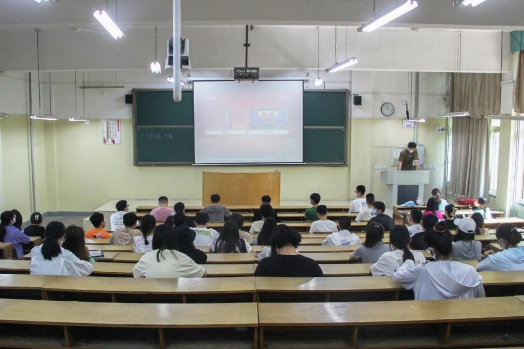 5月28日,pg游戏电子模拟器全体学生党员在5#206观看中国共产党山东省第十二次代表大会开幕式直播。