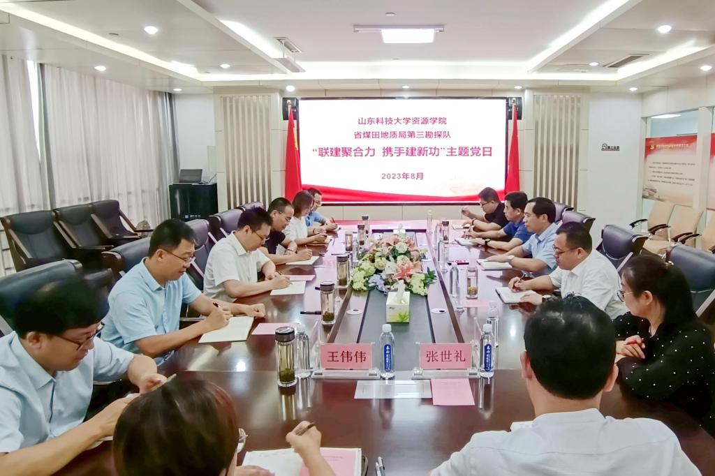 8月1日,pg游戏电子模拟器院长王清标带队赴山东省煤田地质局第三勘探队开展“联建聚合力 携手建新功”主题党日活动,pg游戏电子模拟器党委副书记程家国、学院副院长王辉、于小鸽及部分党支部书记参加。山东省煤田地质局第三勘探队党委书记兼队长李富强、党委副书记王涛以及相关部门负责人接待。