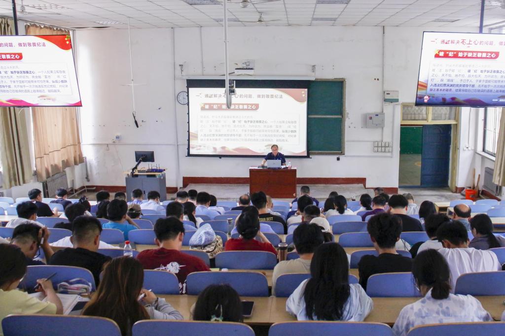 5月21日,pg游戏电子模拟器党委书记高尚宇在学院全体党员大会上,以“准确掌握《中国共产党纪律处分条例》的要求和蕴含原理”为题,讲授了党纪学习教育专题党课。