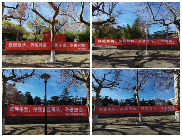 活动前,学院广泛征集横幅内容、严格把关内容质量、精心考量悬挂地点,有序组织人员开展悬挂工作。活动中,学院辅导员以笔笺情,在每一条横幅上为考研学子写下殷殷鼓励;同学们签下姓名,为日夜备考的学长学姐们送上真挚祝福;考研学子纷纷驻足观看、拍照留念,喜悦之情溢于言表,深受鼓舞。