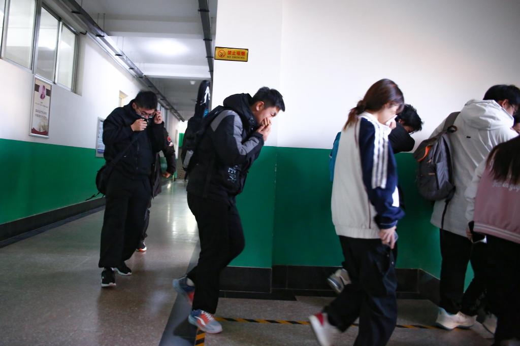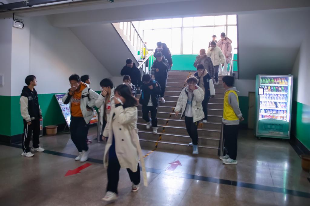 演练开始前,pg游戏电子模拟器团委对全体参演人员、相关工作人员进行了细致培训,做好了充分的准备。随着警报声响起,2号楼仿真火灾点烟雾弥漫,楼内各疏散口、楼梯口等重点区域的引导员迅速就位,引导同学们使用湿毛巾捂住口鼻,弯腰俯身,按照指定疏散路线撤离。全体同学紧张有序地撤离到篮球场安全区域,圆满完成了本次消防应急疏散演练活动。
