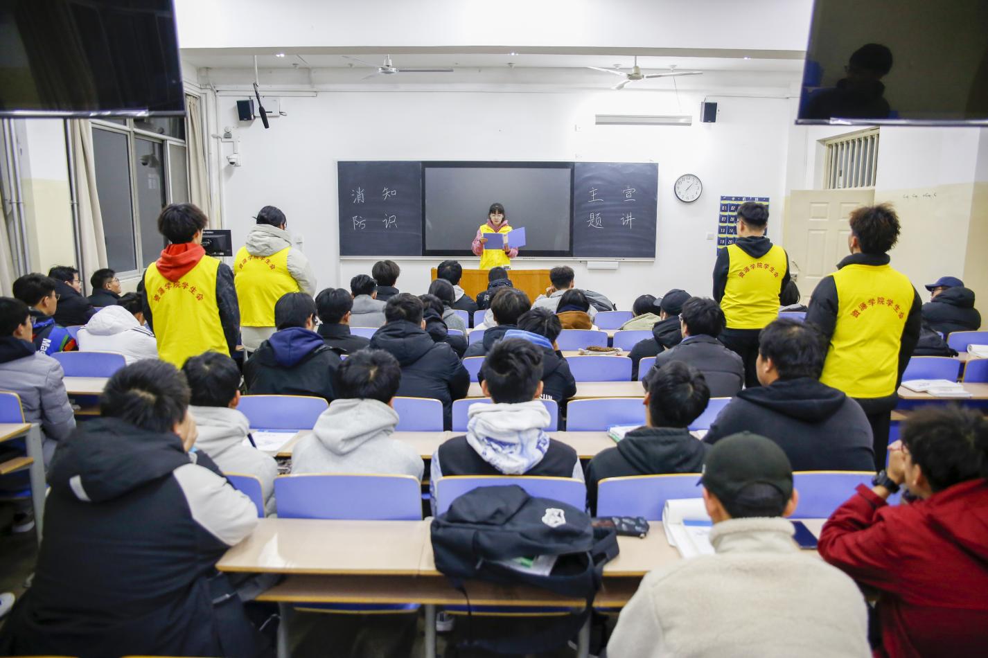 防火无小事,安全记心间。宣讲人以消防安全为主题,结合典型案例,围绕校园中常见的火灾类型、火灾的预防及逃生的自救方法等方面展开详细的讲解。宣讲人指出,紧绷安全之弦,长鸣安全之钟,每个人都应为自己和他人的安全负责,希望同学们自觉学习消防安全和自救知识,切实提高消防自救能力,助力安全和谐校园建设。(文:宋文静  图:张宏伟 李佳璇