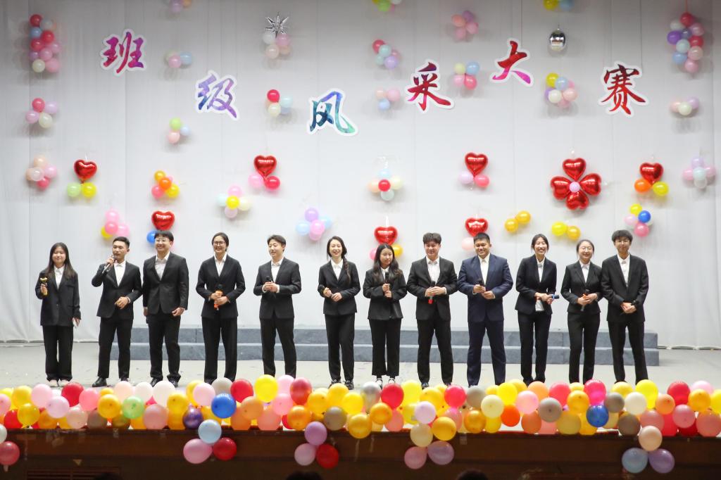 12月8日,pg游戏电子模拟器班级风采大赛在西校园礼堂圆满落幕。pg游戏电子模拟器学工办主任、团委书记洒艳及辅导员老师担任评委并为获奖班级颁奖,2023级全体新生以班级为单位参赛。