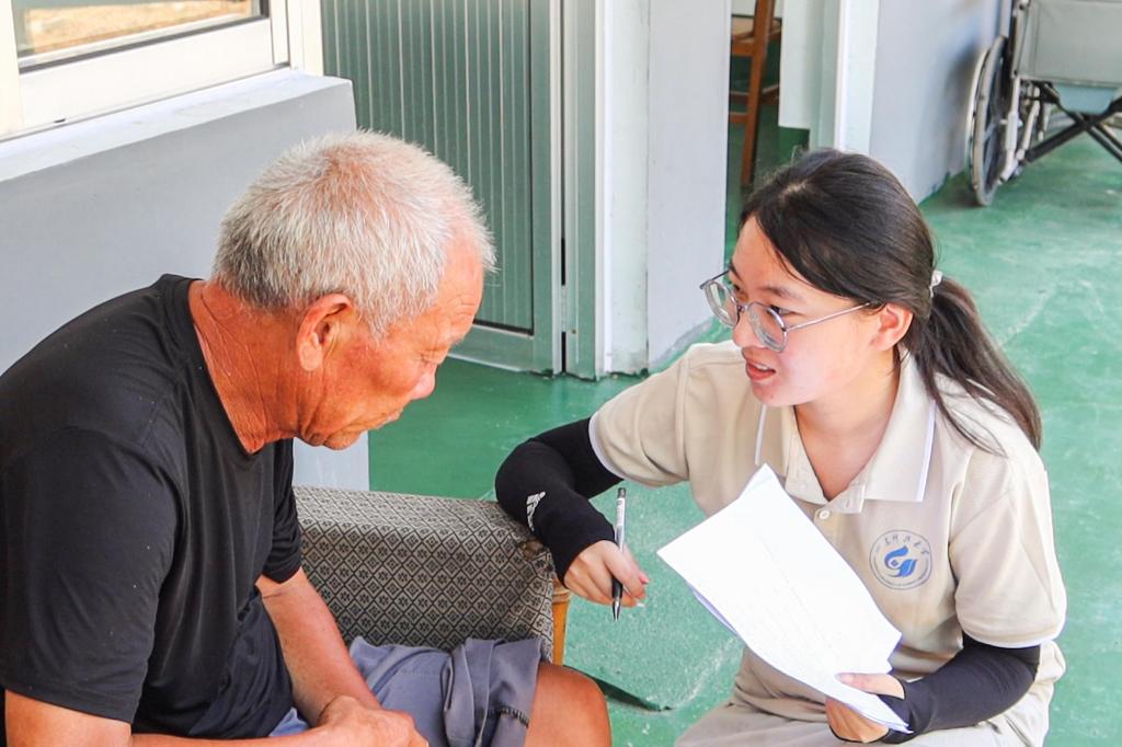 团队成员通过与养老院负责人座谈,详细了解院内基础设施、护理服务及老人日常生活状况。随后,成员分组开展志愿服务,通过陪伴聊天、下棋、手工制作等活动,与老人亲切交流,倾听人生故事,感受岁月沉淀的智慧与温情;队员们还通过问卷调查和深度访谈等方式,系统收集收集老年群体在医疗、娱乐、心理支持等方面的实际需求,并对当前乡村养老服务面临的挑战与机遇进行了初步的分析。