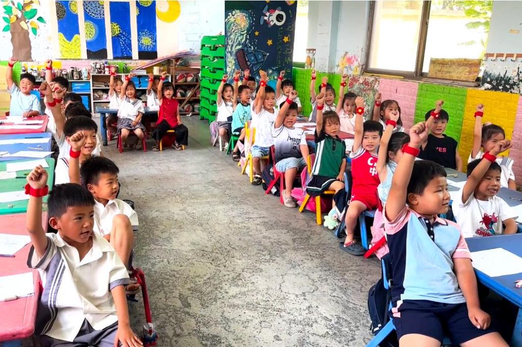 8月1日,pg游戏电子模拟器“齐鲁青衿溯红志,延州星火耘‘红魂’”社会实践团队前往菏泽市郓城县幼儿园开展幼儿红色启蒙教育活动。