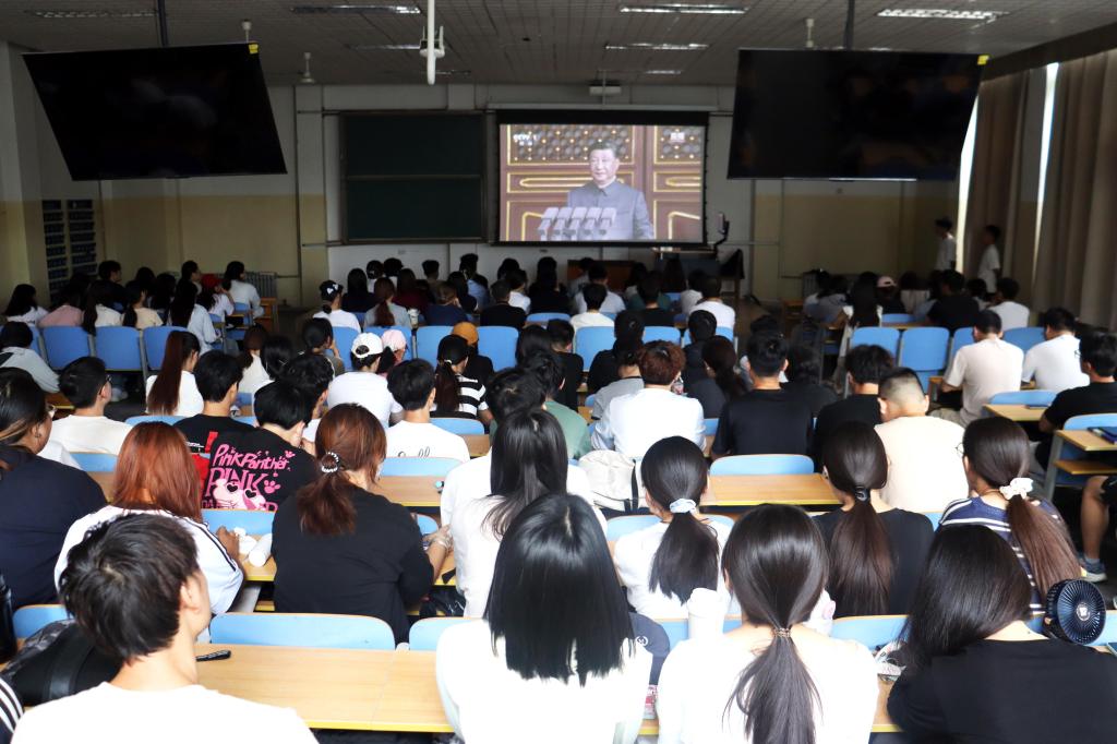 9月3日,pg游戏电子模拟器组织师生集体观看中国人民抗日战争暨世界反法西斯战争胜利80周年大会,深化爱国主义教育,弘扬伟大抗战精神。