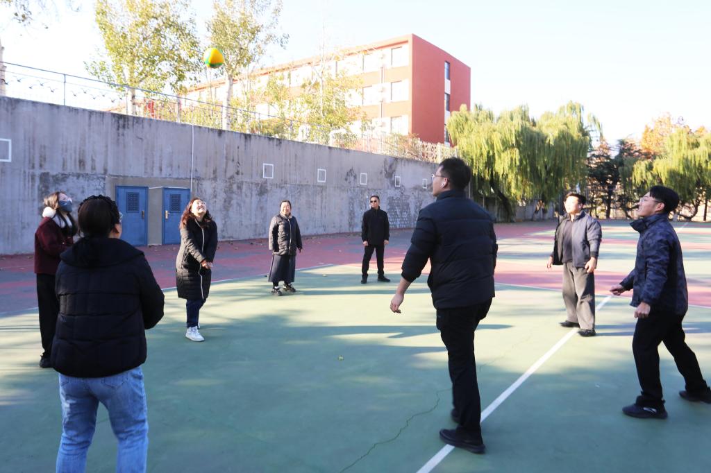 活动期间,教职工们精神抖擞,沿跑道结伴而行。大家在初冬的暖阳下畅快交流,步履轻盈,展现出昂扬的风貌。健步走结束后,教职工们移步至篮球场和排球场,参加篮球比赛和趣味排球颠球活动。现场气氛热烈欢快,大家踊跃参与,默契配合。