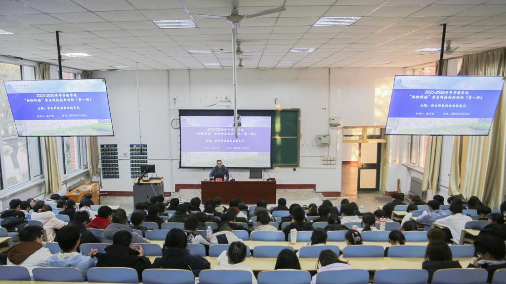为激发学生科技创新热情、提升科研素养,12月10日,pg游戏电子模拟器在1A107教室举办“扬帆科海”学生科技创新讲坛。校科技处副处长兼校区科研管理办公室主任秦广鹏担任主讲人,2024、2025级学生积极参加。