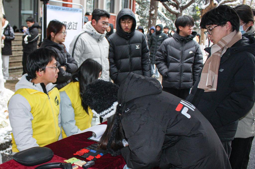 考试当天,学生会志愿者提前到场布置服务点,精心准备好听力专用耳机、电池、涂卡笔、橡皮等必备考试物资,以应对各类突发需求。考生纷纷表示:“从考点指引到物资补给,学院的精心组织和周到服务让人倍感温暖,这份支持给了我们很大的安心。”