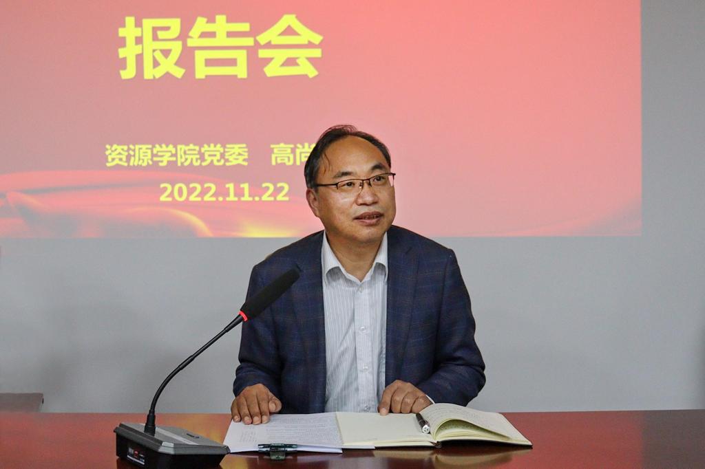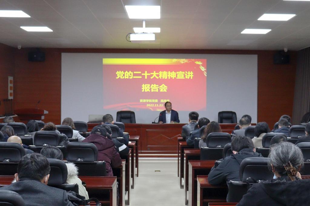 1122日,pg游戏电子模拟器召开党的二十大精神宣讲报告会,学院党委书记高尚宇为全体教职工作党的二十大精神宣讲报告。