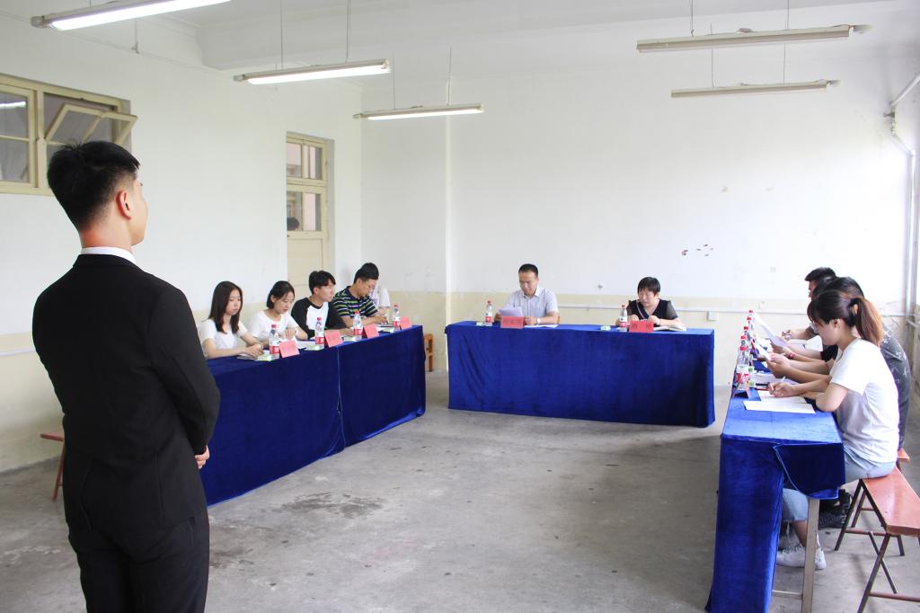 6月18日,pg游戏电子模拟器在3#506举行第二十三届学生会主席团换届竞选面试。学院党委副书记兼副院长程家国、团委书记洒艳、学院辅导员尹发利、王淦及第二十二届学生会主席团成员担任面试官,共有11位候选人参加。
