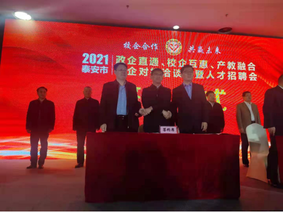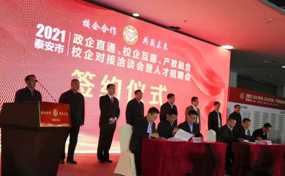 2021年泰安市“政企直通、校企互惠、产教融合”校企对接洽谈会暨人才招聘会于2021年3月24日在泰安会展中心举行。副市长宋洪银及市发改委、市科技局、驻泰高校、企业等多家单位参加。