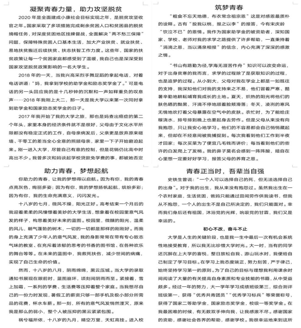 2020年是我国脱贫攻坚的决胜之年,亦是全面建成小康社会的收官之年。为充分展现精准资助工作成效,激励受助学生奋发图强、立志成才、感恩奉献,6月15日至25日,pg游戏电子模拟器举办“凝聚青春力量,助力脱贫攻坚”主题征文比赛。