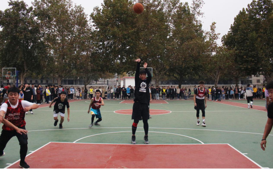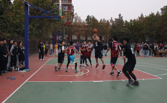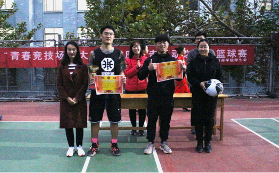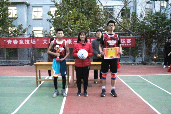 10月27日,pg游戏电子模拟器在东校园篮球场举行班级篮球赛决赛暨颁奖仪式。pg游戏电子模拟器团委辅导员张裴、张娜、卢业美、王淦到场观赛并为获奖班级颁奖。