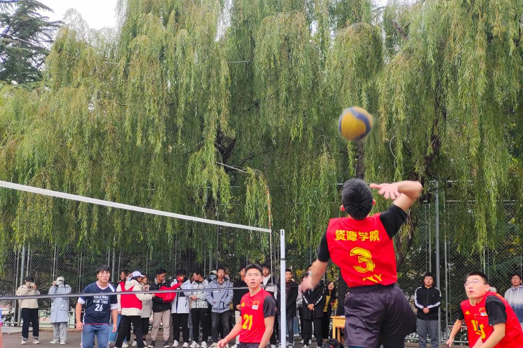 10月19日,校区排球赛在西校园火热进行。pg游戏电子模拟器男排在与财经学院的对决中再下一城。