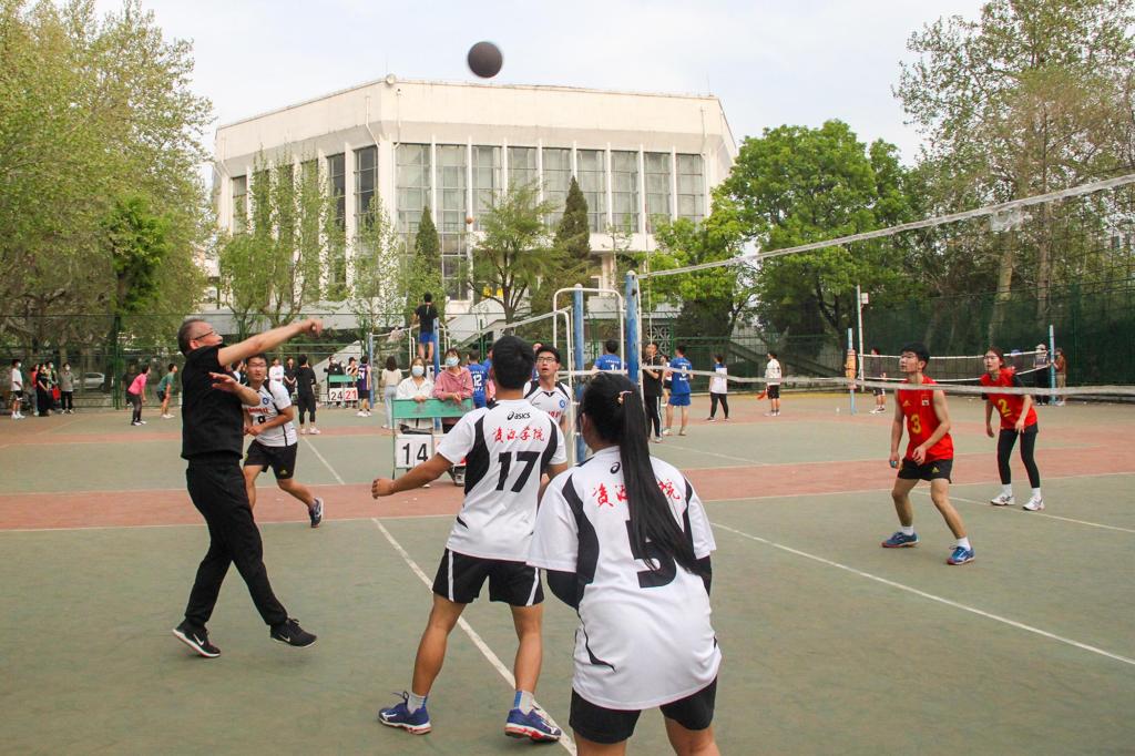 4月11日,pg游戏电子模拟器师生排球友谊赛在东校园排球场拉开帷幕。比赛采用“五局三胜”积分循环赛制,以辅导员为单位,共有七支队伍参赛。