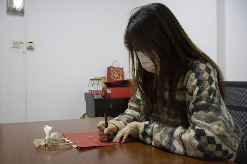 工作人员将苹果、橙子、涂卡笔、口罩等礼物装入福袋,组织同学们踊跃参与到福袋绘制活动中来。同学们精心设计构图,将祝福画成一幅画、写成一首诗,描绘到一个个小巧精致的福袋上。学生会广泛征集条幅标语,严格把关挑选,精心考量悬挂地点,写满激励话语的条幅,鼓舞着考研士气、坚定着必胜信心。精心设计的幸运盲盒也同样引人注目,明信片和棒棒糖,寓意“‘棒’上有名,金‘棒’题名”。除此之外,学院还定制“一研为定”“一战成硕”寄语展板、合影板与祝福牌,为考研学子留下美好回忆,送去今冬的专属祝福。
