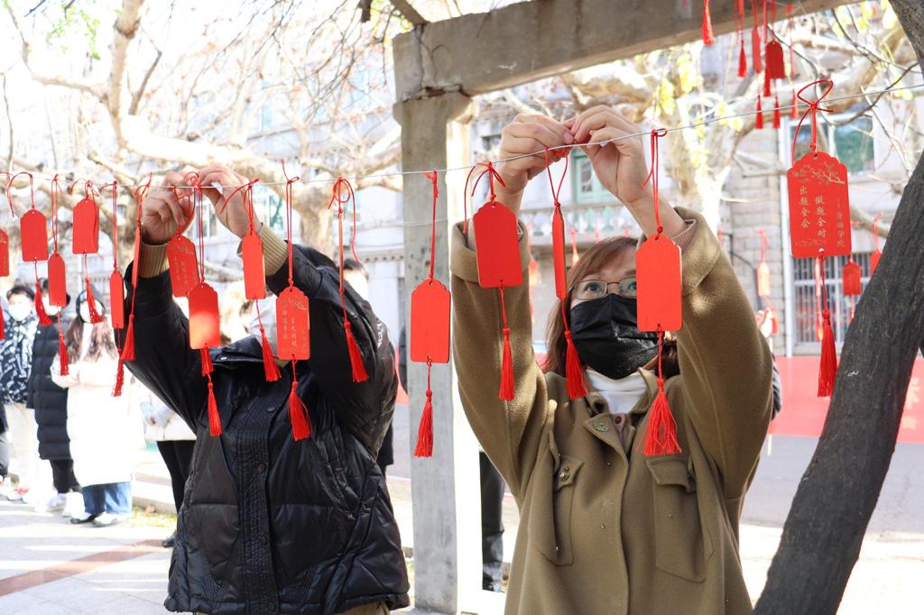 小小祝福牌,情谊满满,这是来自学院的特殊礼物。一块块写满“金榜题名”“旗开得胜”“研途星光,不负你我”等寄语的祝福牌悬挂在小花园附近的树梢上、走廊旁。路过的考研学子停下匆忙的脚步,精心挑选心仪的祝福牌,分享祝福,感受喜悦。