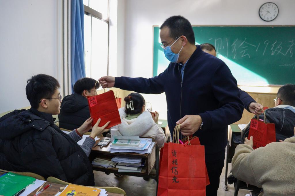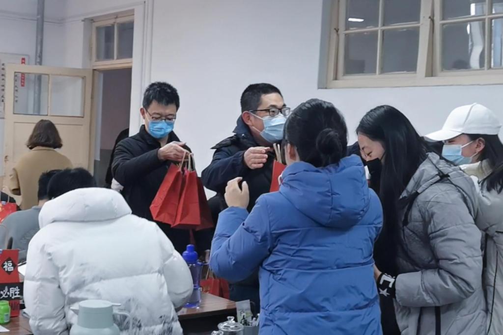 “送福袋是想让同学们知道你们不是一个人在战斗,老师们也将陪伴大家坚持到最后一刻!”学院副院长秦广鹏亲切鼓励道。