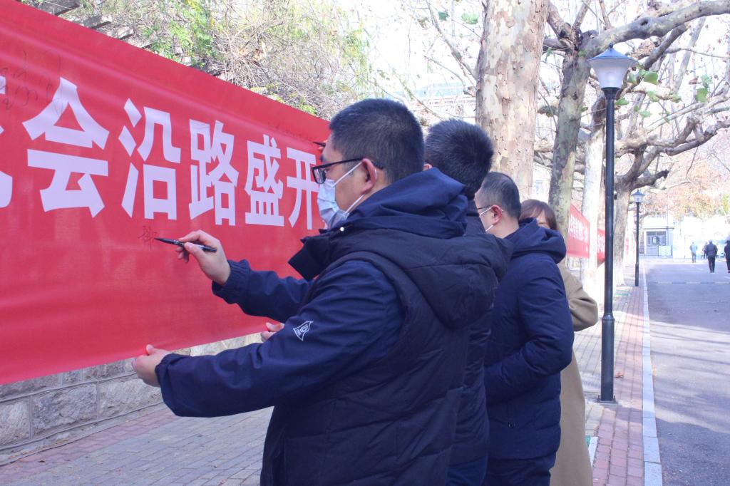 林荫道旁,学院领导与辅导员以笔笺情,在条幅上为考研学子写下殷殷鼓励;同学们提笔书写祝愿,为日夜备考的学长学姐们送上真挚祝福;考研学子纷纷驻足观看、拍照留念,喜悦之情溢于言表,深受振奋与鼓舞。