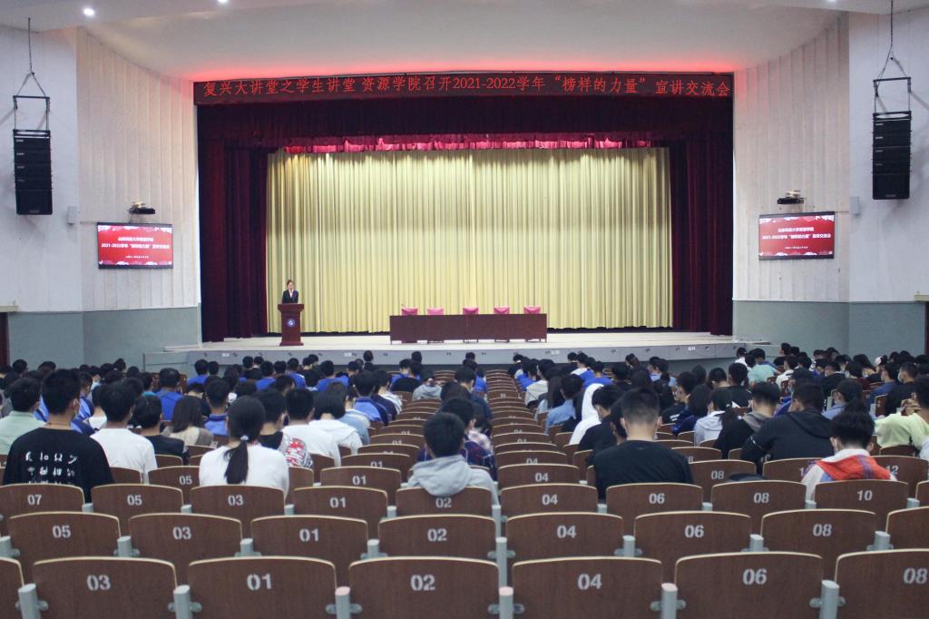 10月6日,pg游戏电子模拟器在东校园礼堂召开2021-2022学年“榜样的力量”宣讲交流会,学院优秀学生代表段蓉蓉、陈翌娇、刘帅杰、董英浩担任主讲,2021级全体新生参加。