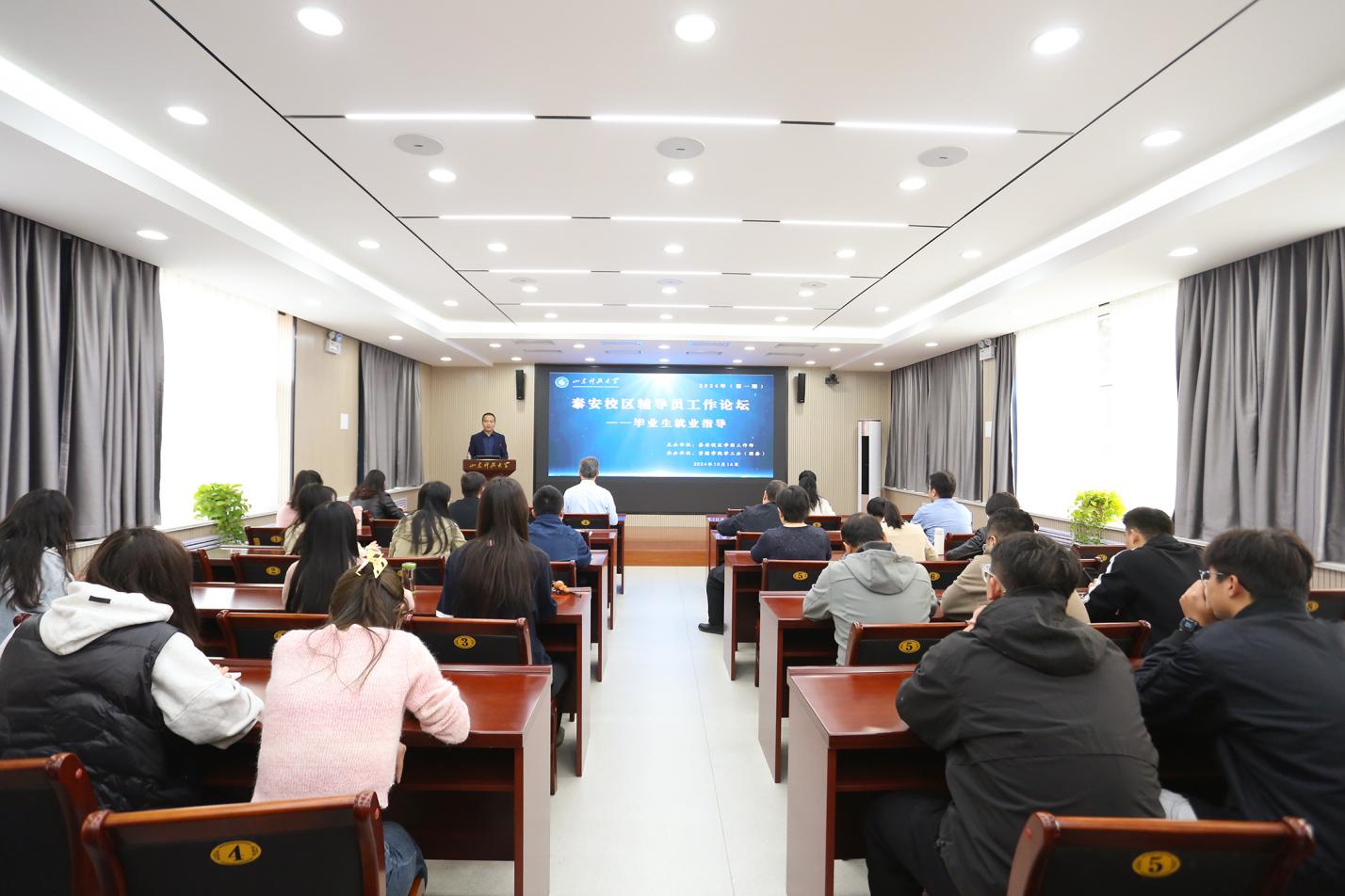 10月16日,由泰安校区学团工作部主办、pg游戏电子模拟器承办的辅导员工作论坛第一期在办公楼301举行,论坛聚焦“毕业生就业指导”这一核心议题,汇集校区学生工作者智慧,共商新时代背景下高校学生就业工作的应对之道。泰安校区管委副主任兼学团工作部主任戴东宝作开幕致辞。pg游戏电子模拟器党委副书记、副院长程家国主持,校区全体学生工作干部参加。