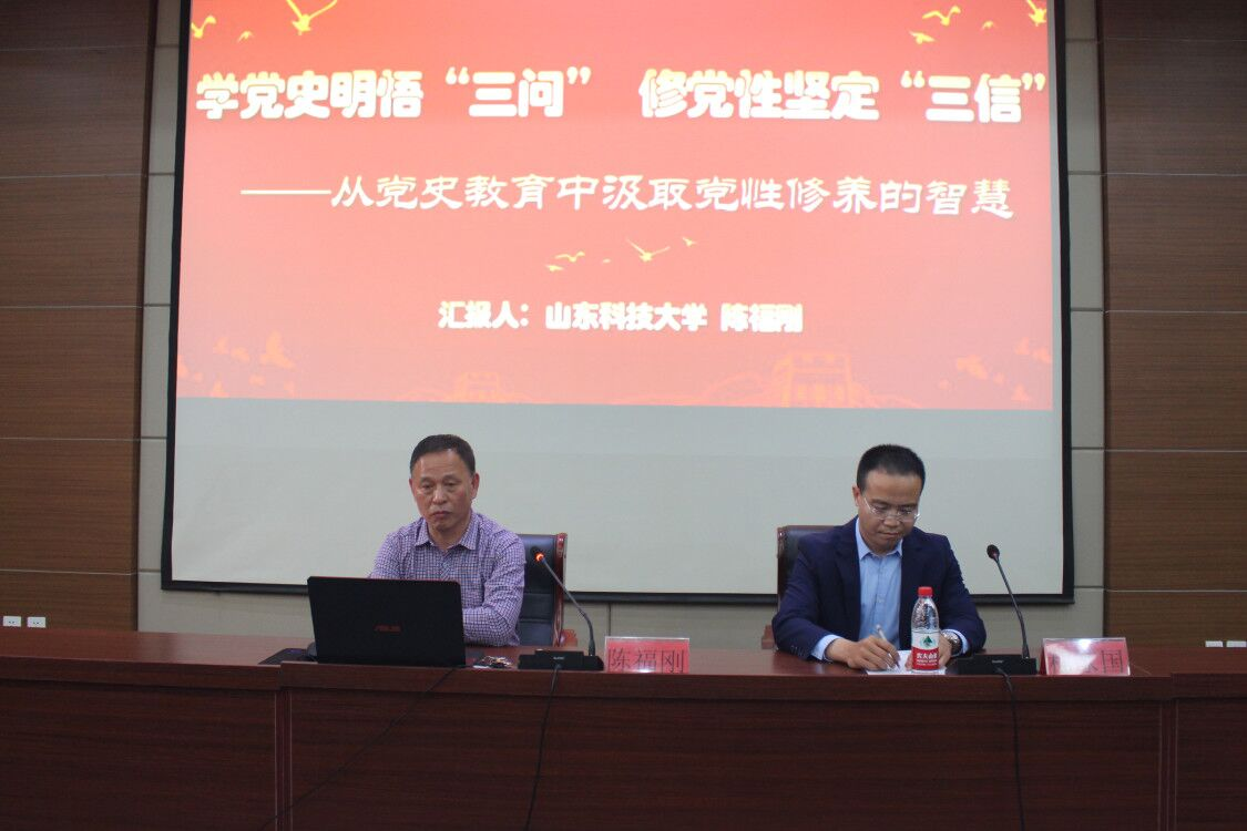 会上,陈福刚以“学党史明悟三问,修党性坚定三信”为题,紧扣“信念、信仰、信心”三大关键词,全面阐述了在全党上下开展党史学习教育工作的重大现实意义,回顾讲述了以毛泽东为核心的老一辈革命家和革命先烈为建立、捍卫、建设新中国而舍生忘死、呕心沥血的奋斗伟绩。他指出,从嘉兴南湖的小小红船到新时代的巍巍巨轮,百年党史,一头连着光荣的过去,一头通向辉煌的未来。学深悟透百年党史,是为了牢记初心使命、推动各项事业新发展;是为了坚定信仰信念、进一步增强“四个自信”;是为了推进自我革命,保持“赶考”的清醒;是为了不断提升政治素养,更好继往开来,担当现代化建设的重任。他强调,学党史不仅要知其然,还要知其所以然,更要知其所以必然,与会人员要坚持辩证唯物主义和历史唯物主义的立场观点方法,科学把握发展规律,深入领会党史中蕴含的重要理念、重大论断、重大举措,从革命先辈身上感悟为国为民、无私奉献的崇高精神,让党性修养常学常固常新,努力做到学史明理、学史增信、学史崇德、学史力行。