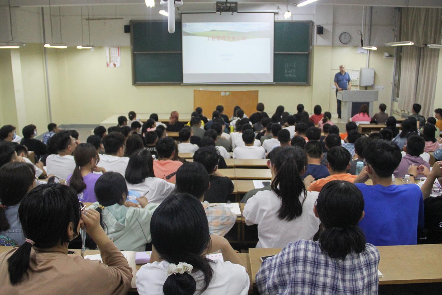 9月9日,pg游戏电子模拟器在5#204、5#206分别举办防灾减灾科学与工程和工程管理专业介绍讲座。资源工程系主任张培鹏、工程管理系副主任吴新华担任主讲,测绘工程系主任张晨晰、地质工程系主任张丽出席本次讲座,2021级全体学生参加。