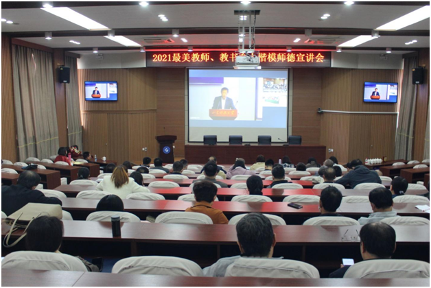 10月19日,pg游戏电子模拟器院长王清标在pg游戏电子模拟器“山海泉”师德宣讲团成立大会暨“2021最美教师、教书育人楷模师德宣讲会”上作报告,于泰安校区分会场1号楼报告厅作线下宣讲。泰安校区教师代表线下聆听了王清标院长的报告,线上观摩了宣讲会全程。