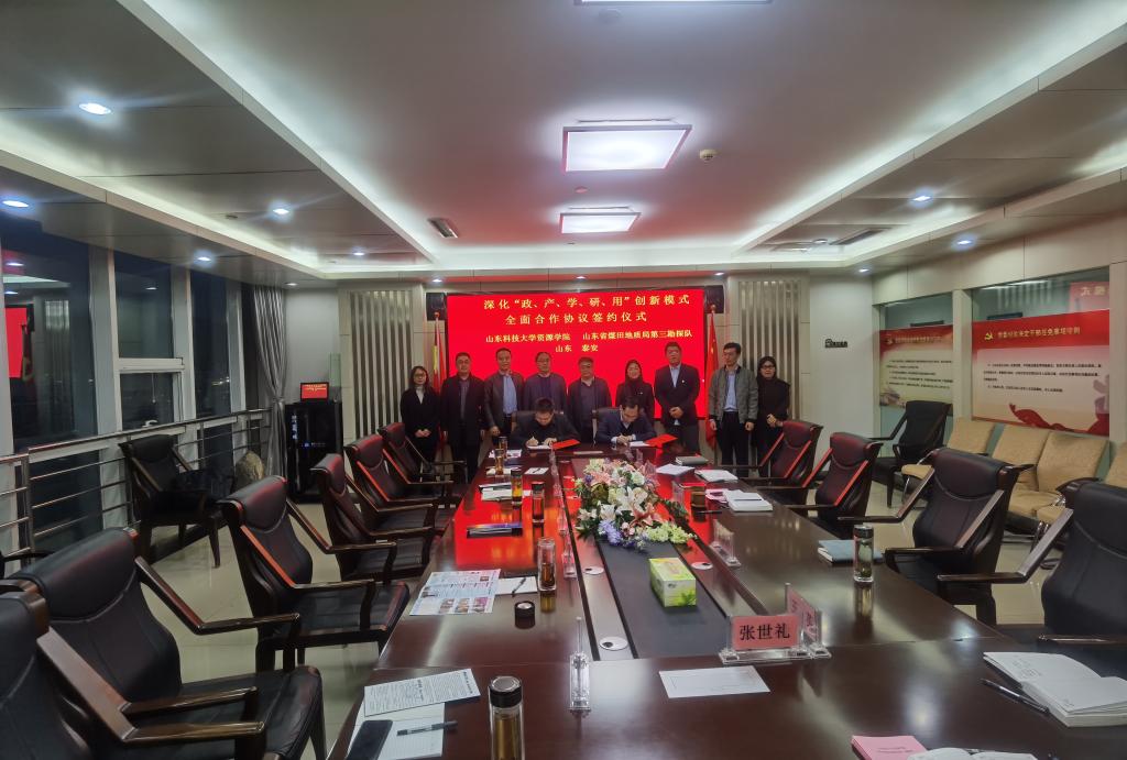 山东煤田地质局第三勘探队党委书记张洪岩,副书记、队长李富强,副队长牛妍,pg游戏电子模拟器党委书记高尚宇,院长王清标,副书记、副院长程家国,副院长秦广鹏、于小鸽出席签约仪式。(文:张培鹏)