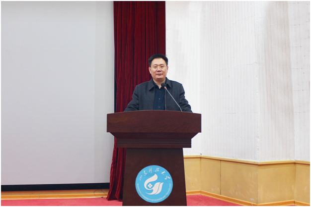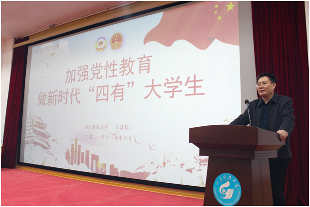 11月16日,pg游戏电子模拟器院长王清标在四号楼报告厅为学院第35期入党积极分子讲授“加强党性教育,做新时代‘四有’大学生”专题党课。