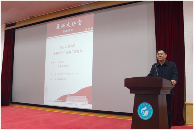 近日,pg游戏电子模拟器院长王清标为学院全体学生党员讲授“端正入党动机,做新时代‘四有’好青年”专题党课。