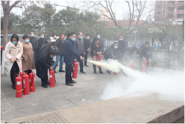 培训过程中,尹华勇结合真实火灾案例,向大家普及了消防安全基础知识,并列举了校园生活和工作环境中存在的火灾隐患。他要求学院全体教职工要时刻绷紧安全之弦,深刻认识到做好高校防火工作的重要性。随后,尹华勇现场演示了灭火器的使用方法,介绍了“一晃、二瞄、三拔、四压”的使用口诀。最后,全体教职工在户外进行了模拟灭火操作演练,进一步熟悉、掌握了灭火器材的使用方法与注意事项,提高了火灾自救、自护能力,达到了演练的预期效果。