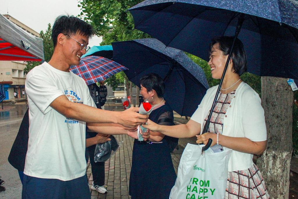 “老师,送您一束花,感谢您的悉心培养!”毕业生也为领导、老师送上鲜花,将真挚心意寄予花香,将谆谆教诲铭记心田。