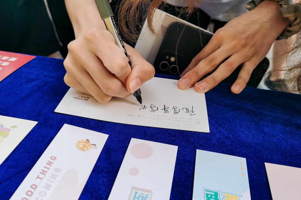 “愿你归来,仍是少年”“你要日益努力,而后风生水起”“回首,是一段青春无悔的岁月,前望,有一个繁华似锦的前程”……“时光慢递”、以书传情,在校生写下款款送别心意,毕业生留下殷殷寄语,献给两年后的自己。