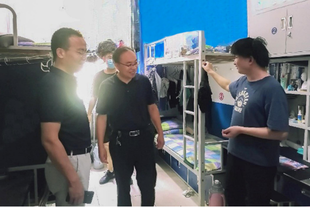 6月21日,pg游戏电子模拟器党委书记高尚宇,党委副书记、副院长程家国带队辅导员一行深入学生宿舍开展走访慰问活动,深入了解近期高温天气下学生的学习、生活情况,并要求全体辅导员全力做好本学期学生在校期间正常学习、生活的各项服务保障工作。