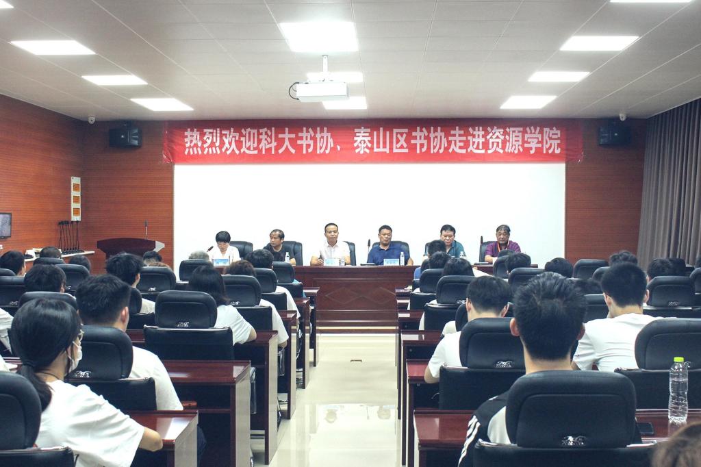 6月28日,pg游戏电子模拟器在2号楼201举行“迎七一,传统文化进校园之书法进大学”暨科大书协、泰山区书协向资源学子赠送书法作品活动。活动由学院学工办主任、团委书记洒艳主持,学院党委副书记副院长程家国、科大书法协会代表、泰山区书法协会代表出席活动。