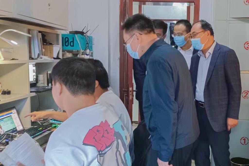 10月24日,pg游戏电子模拟器党委书记高尚宇,院长王清标,党委副书记、副院长程家国及辅导员一行深入学生宿舍、自习室,检查线上课堂教学,了解学生学习生活情况。