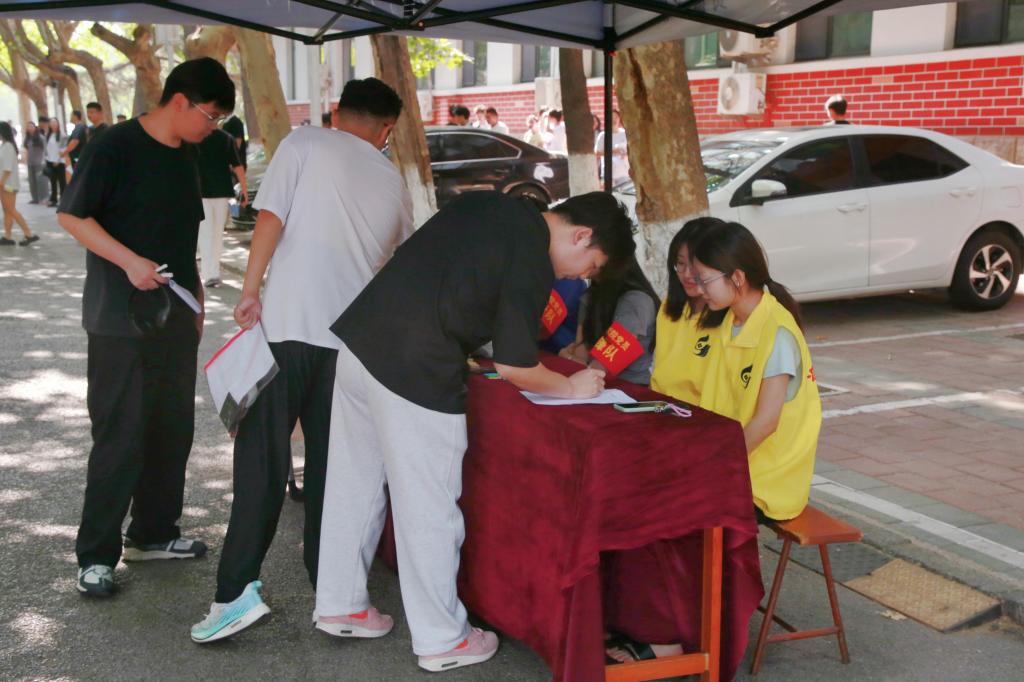 活动筹备阶段,学院学生会工作人员精心布置考场周边服务站点,将听力耳机、备用电池、涂卡笔等考试必需品分类摆放,搭建起便捷高效的应急补给站。考试期间,学院全体辅导员全程值守,为考生提供心理疏导和应急服务。领取考试用品的考生表示:“学院的贴心服务让我们倍感安心,能够以更好的状态应对考试。”