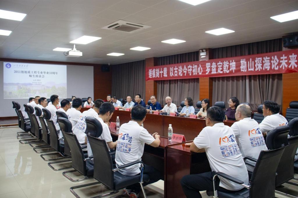 7月5日,pg游戏电子模拟器喜迎地质工程2011级校友返校,师生欢聚一堂,共叙十年之情。校区领导贾宏俊、pg游戏电子模拟器党委书记高尚宇、学院党委副书记程家国、学院副院长于小鸽出席座谈会,学院教师代表及地质工程2011级20余名校友参加。