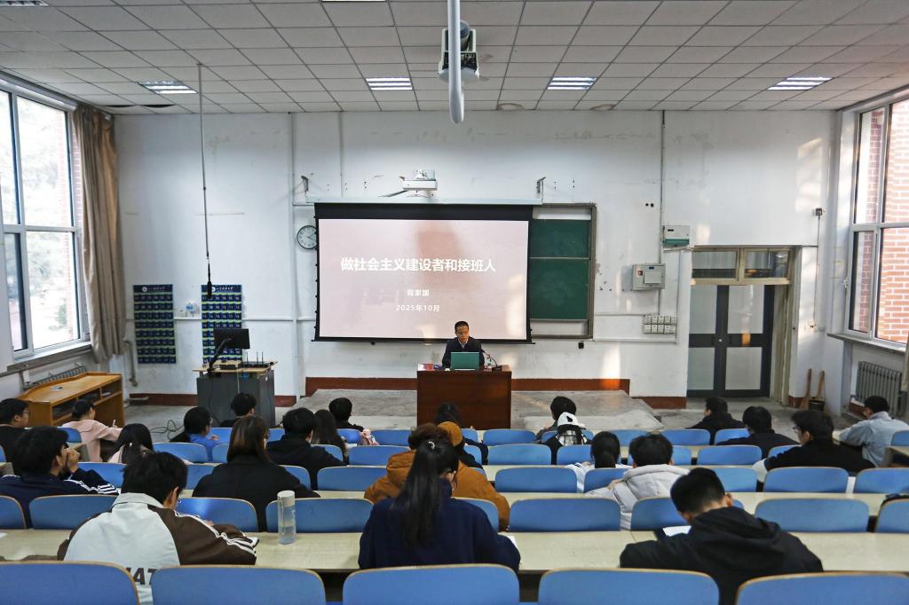 10月31日,pg游戏电子模拟器党委副书记程家国在1A107教室为第43期入党积极分子讲授“做社会主义建设者和接班人”专题党课。