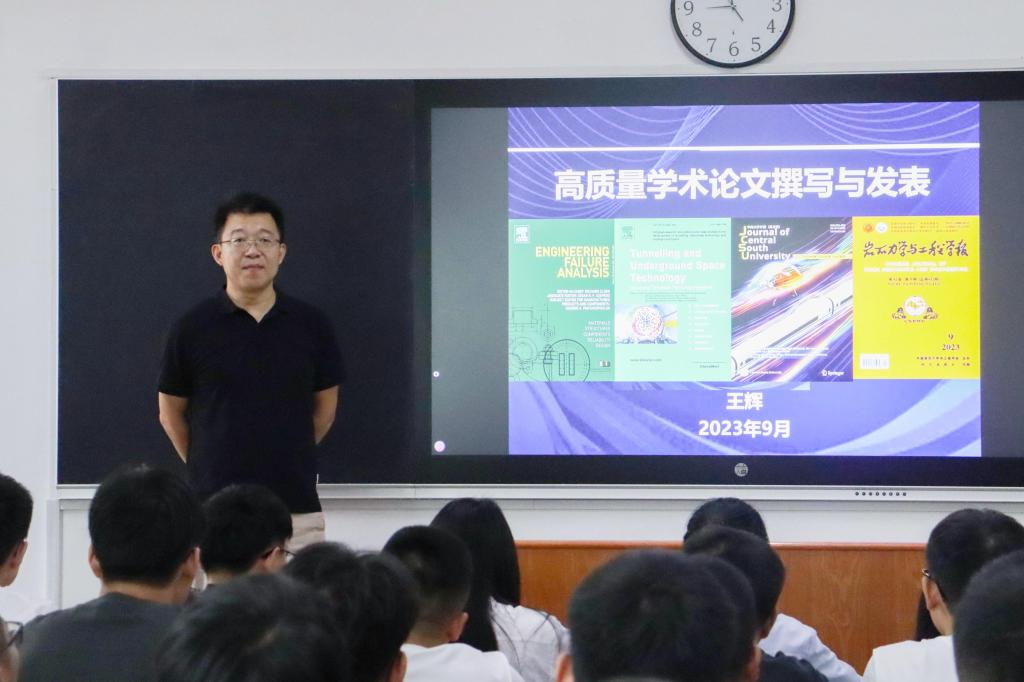 9月6日,pg游戏电子模拟器副院长王辉在东校园5#301为2023级全体研究生作“高质量学术论文撰写与发表”学术讲座。