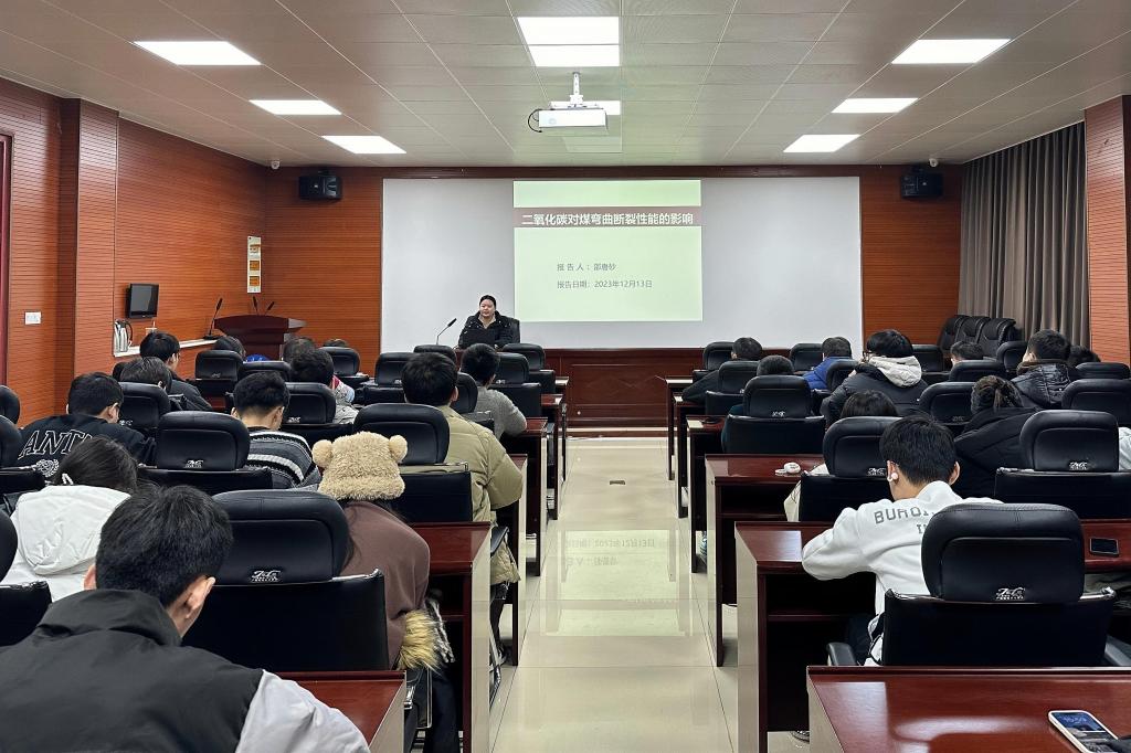 12月13日,pg游戏电子模拟器教师邵唐砂在东校园2号楼201会议室为研究生作“二氧化碳对煤弯曲断裂性能的影响研究”学术报告。